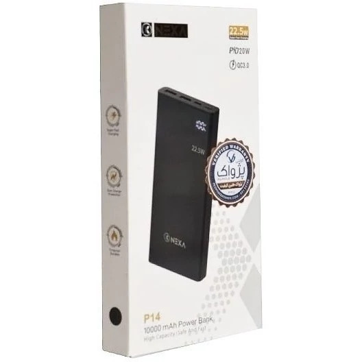 پاوربانک برند NEXA مدل P14A با ظرفیت 20 هزار میلی آمپر ساعت می باشد. این پاور بانک با دارا بودن 2 پورت USB برای خرجی با توان حداکثر 3 آمپر یک پاوربانک بسیار ایده آل می باشد. کیفیت ساخت و متریال بدنه پلاستیکی این پاوربانک بسیار جلب توجه کننده است. این پاوربانک همچنین دارای صفحه نمایشگر عددی برای نمایش میزان شارژ دستگاه می باشد