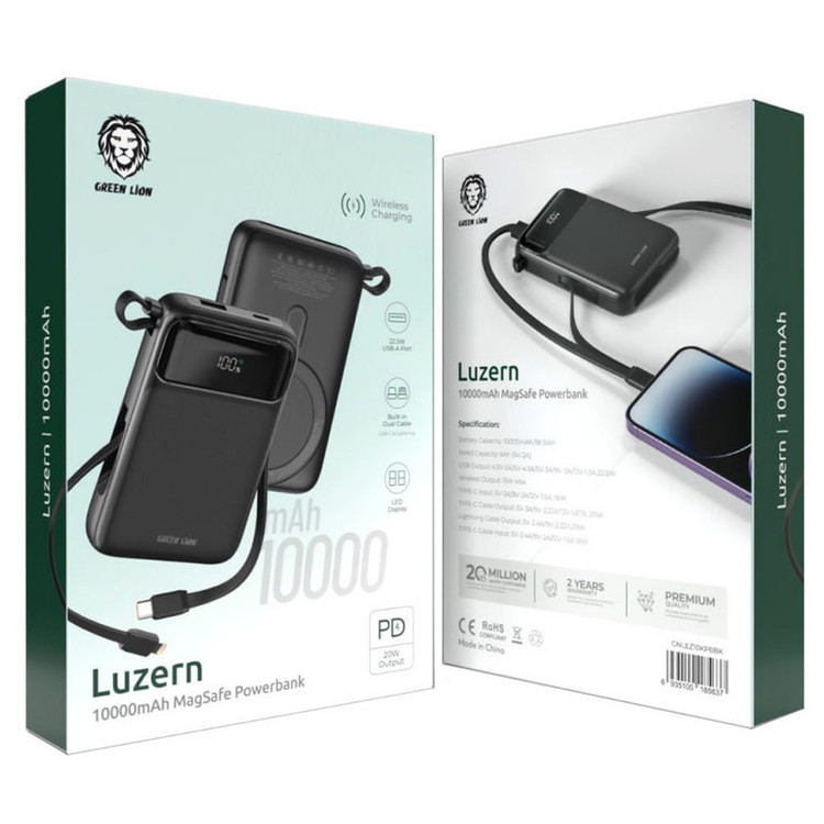 پاوربانک گرین لاین مدل Luzern ظرفیت 10000 میلی آمپر ساعت
