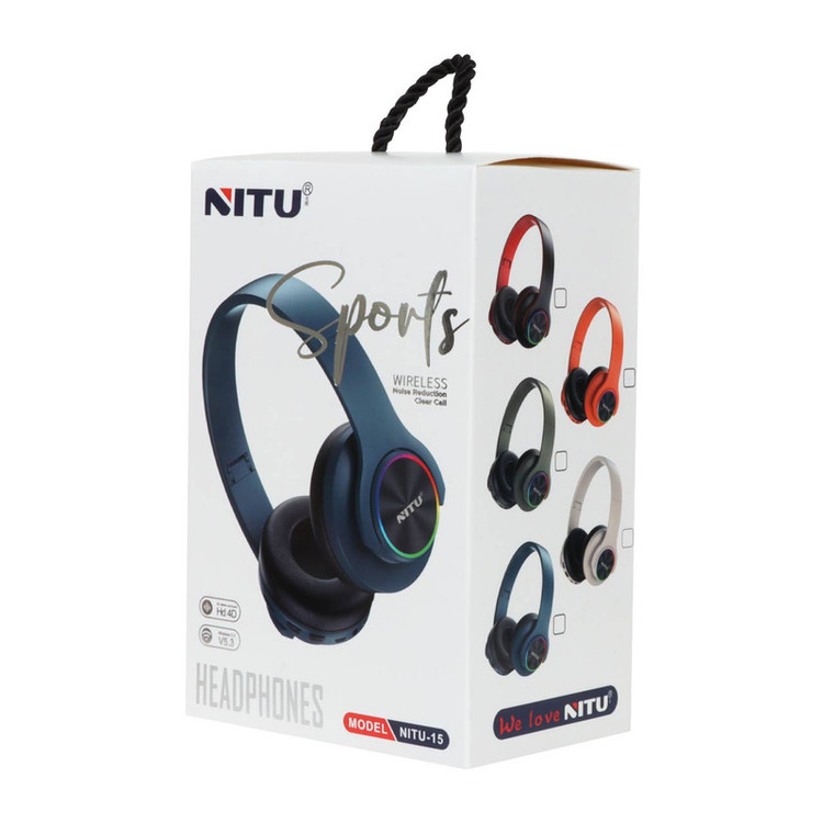 هدفون بلوتوثی نیتو NITU-15 محصولی از کارخانه نیتو است. نحوه اتصال هدفون با بلوتوث نسخه 5.3 با برد 10 متر است.دارای باطری 200 میلی آمپری است.مدت زمان شارژ شدن ۲ ساعت میباشد.قابلیت استفاده از َهدفون تا 5 ساعت مداوم را دارد.هدفون تا 15 روز در حالت آماده باش قرار میگیرد.ظاهری جذاب و متریال باکیفیت در ساخت دارد.هدفون دارای پورت جک 3.5 میلیمتری میباشد.گوشی ها مجهز به نویزگیر هستند و کیفیت صدای عالی دارند.دارای پنل کنترل صدا و موسیقی است.مناسب برای بازی وموسیقی و … میباشد.دارای ظاهری جذاب و رنگبندی عالی میباشد و روی گوشی ها LED های رنگی وجود دارد.گوشی ها دارای خاصیت تا شو هستند و هدفون جمع میشود و جابه جایی آن آسان است.ساختاری منطبق بر ارگونومی گوش و بدون وارد کردن فشار بر گوش دارد.گوشی ها دارای کیفیت صدای های فای استودیو ،HD و 4 بعدی است.
