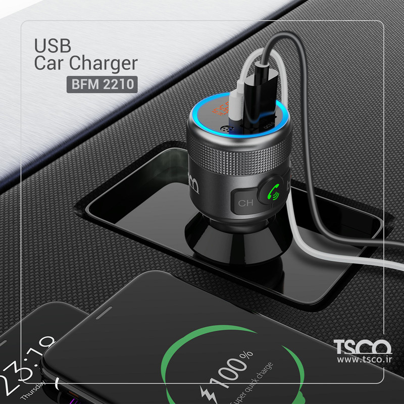 اتصال به بلوتوث با توجه به اینکه اکثر لوازم الکترونیکی امروزی به آن مجهز هستند ضروریست. ماشینهایی که نسبتاً قدیمیتر هستند ممکن است به این قابلیت مجهز نباشند. تسکو محصولی کاربردی را به منظور حل این مسأله ارائه کرده که به راحتی میتوانید از آن استفاده کنید. رابط بلوتوث TSCO مدل BFM 2210 با ویژگیهای جذاب و منحصر به فرد دریچهای به دنیای مدرن باز میکند. طراحی بدنه آن به رنگ مشکی و نقرهای مزین شده که با دکمه تماس روی آن ظاهر کاملتری به خود میگیرد. در ادامه همراه ما باشید تا مشخصات این رابط بلوتوثی را با هم مرور کنیم. محصول کاربردی تسکو با ارتفاع 83 میلیمتر برای قرار گرفتن در ماشین مناسب است. توان کلی BFM 2210 برابر 42 وات بوده و بسیار قوی عمل میکند. این رابط مجهز به نمایشگر LED است که میزان ولتاژ باتری ماشین را در حالت اتصال نشان میدهد. جنس بدنه آن از ABS Shell و Aluminum Ring تشکیل شده که مقاومت این رابط بلوتوثی را تضمین میکند. ابعاد محصول برابر 36×36×83 میلیمتر بوده و با وزن 45.8 گرم میتواند بسیار کاربردی باشد. ولتاژ ورودی BFM 2210 به اندازه 12-24 ولت بوده و به دو درگاه خروجی مجهز است. این دو درگاه شامل یک پورت USB-A و یک Type-C میشوند. نسخه بلوتوث آن 5.3 بوده و از پروتکلهای AVRCP,HFP,A2DP پشتیبانی میکند. فرکانس رادیویی که این رابط بلوتوث میتواند دریافت کند بین 87.5-108 مگاهرتز قرار دارد. بلوتوث این دستگاه تا فاصله 10 متری میتواند پاسخگو باشد. از قابلیتهای خوب BFM 2210 توانایی سویچ خودکار از حالت موسیقی به مکالمه هنگام دریافت تماس ورودی است. تواناییQC3.0 + PD 24W نیز برای این دستگاه بلوتوثی در نظر گرفته شده تا در کمترین زمان ممکن شارژ شود. خاصیت ارتباط دوطرفه در BFM 2210 این امکان را فراهم میکند تا بتوانید مکالمهای بینقص برقرار کنید. بیس این رابط بلوتوث تقویت شده تا عملکرد صوتی را به بهترین نحو ممکن بهبود ببخشد. با استفاده از BFM 2210 میتوانید به دستیار سیری و گوگل نیز دسترسی داشته باشید.