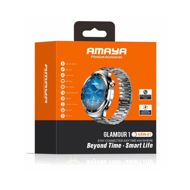 ساعت هوشمند آمایا مدل ASW-۰۱ دارای قابلیتهایی همچون نظارت بر خواب روزانه، ضربان قلب، پایش اکسیژن خون، سوابق حرکت و فعالیت، هشدارهای پیام (WeChat ،QQ ،SMS ،WhatsAPP، فیس بوک، Tittwer، و غیره)، آب و هوا ابزار، تقویم، ماشین حساب، تایمر، کرونومتر، زنگ هشدار، کنترل از راه دور، NFC و SOS است. این ساعت از تراشه Zhongke ۸۹۵۹ و نسخه بلوتوث ۵ پشتیبانی میکند و با گوشیهای اندروید نسخه ۵ یا بالاتر و گوشیهای آیفون نسخه iOS ۱۰.۰ و بالاتر سازگار است. بدنه این ساعت از جنس آلیاژ روی است و دکمههای آن نیز جنس آلومینیومی دارد. همچنین ساعت هوشمند آمایا مدل ASW-۰۱ دارای گواهی IP۶۷ است.