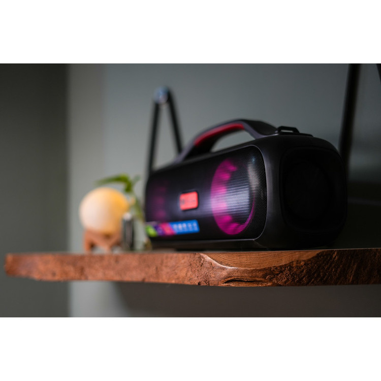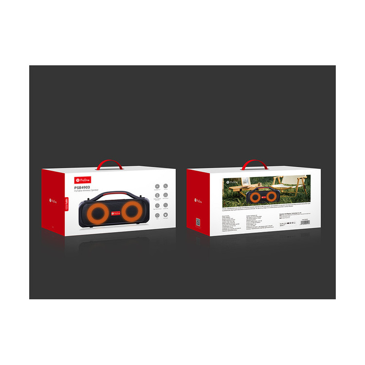 اسپیکرهای بیسیم، یکی از جذابترین لوازم جانبی هستند که تاکنون طراحی و تولید شده است. بلندگوهای بیسیم با فراهم آوردن امکان پخش موزیک بدون وابستگی به کابل شارژ، کاربران را در هر شرایط و محیطی همراهی میکنند. اسپیکر بلوتوثی پرووان مدل PSB4903 یک ابزار برای پخش فایلهای صوتی است. به دلیل طراحی منحصربهفرد اسپیکر PSB4903 صدا در محیط به صورت کامل پخش میشود. با قابلیت ویژه TWS در این اسپیکر، شما میتوانید دو اسپیکر پرووان PSB4903 را به هم متصل کرده و حجم صدای موسیقی را دو برابر کنید. اسپیکر پرووان PSB4903 یک اسپیکر پرتابل است که دارای دستگیره است و به راحتی هر جایی که بخواهید میتوانید آن را همراهتان ببرید. با اسپیکرهای پرووان بدون نیاز به گوشی، با کیفیتی بالا تماسهای خود را جواب بدهید که برای این کار کافی است دکمه پاور را دو بار فشار بدهید. اسپیکر بلوتوثی قابل حمل PSB4903 ضد آب بوده و دارای استاندارد IPX5 است. این اسپیکر با ابعادی معادل طول 360، عرض 135 و ارتفاع 184 میلیمتر طراحی و تولید شده است و قطر هر دو طرف اسپیکر 3.5 اینچ است که خود اسپیکر وزنی معادل 2100 گرم دارد. زیر اسپیکر دو پایه مسطح جهت قرار دادن اسپیکر روی سطوح طراحی شده و در قسمت بالای اسپیکر PSB4903 یک پنل کاربردی جهت قطع و وصل کردن، عقب و جلو زدن موسیقی، تغییر حالات پخش و دکمه روشن و خاموش قرار دارد. این اسپیکر دارای رادیو و میکروفون داخلی است و پورتهای اتصال USB، جک 3.5 میلیمتری صدا و شیار کارت حافظه و ورودی شارژ اسپیکر قرار دارد. قدرت این اسپیکر در مجموع 30 وات بوده و دارای باتری 3000 میلیآمپر با 7.4V است که بهطور نرمال 4 ساعت زمان پخش موسیقی دارد و مدت زمان شارژ آن 4 ساعت است. اسپیکر زیبا و جذاب PSB4903 دارای رقص نور RGB است که با آهنگ تم رنگی جذابی را به تصویر میکشد.