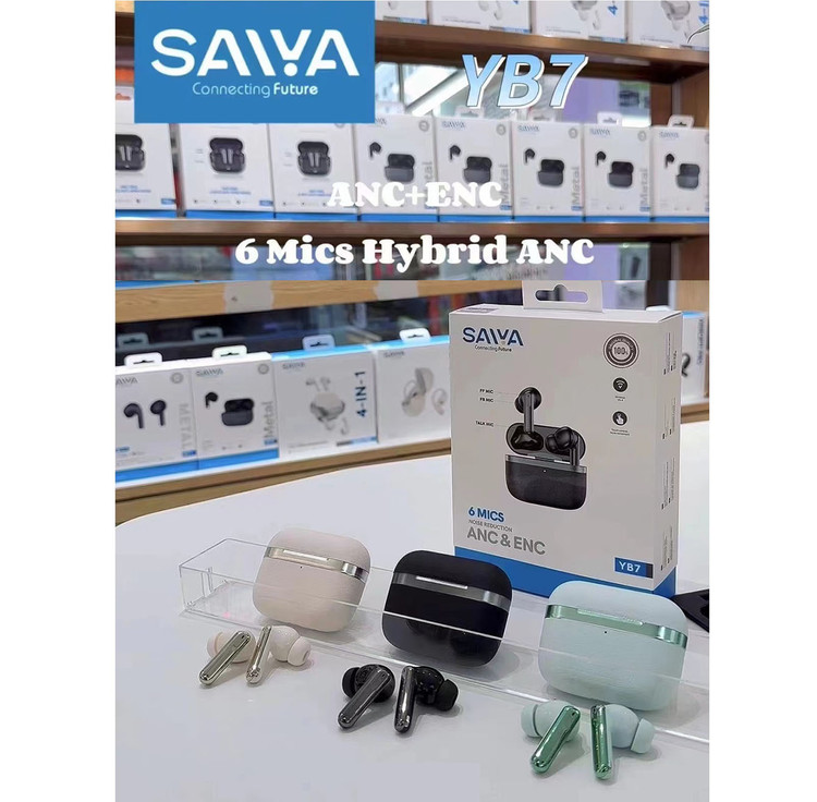 هندزفری بلوتوثی Saiya مدل YB7 دارای 6 میکروفون هیبریدی با قابلیت حذف نویز (ANC) و وضوح مکالمات (ENC)